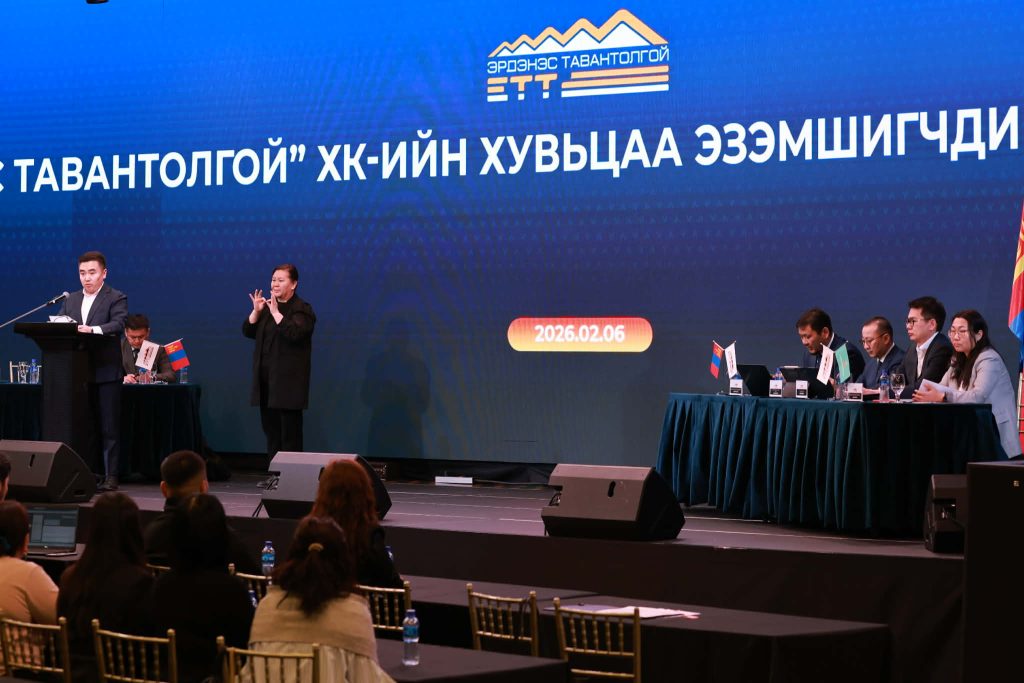 “Эрдэнэс Тавантолгой” ХК-ийн Хувьцаа эзэмшигчдийн ээлжит бус хурал өнөөдөр буюу 2026 оны 02 дугаар сарын 06-ны өдөр Корпорайт Конвейшн центрийн хурлын танхимд боллоо. Ээлжит бус хурлаар компанийн дүрэмд “Компанийн гүйцэтгэх удирдлагыг гүйцэтгэх захирал, хувь хүн эсвэл багаар хэрэгжүүлж болно” гэсэн заалт нэмэлтээр оруулах тухай асуудлыг хэлэлцэн баталлаа.