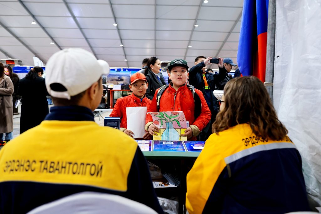 “Эрдэнэс Тавантолгой” ХК үйл ажиллагаа, бүтээгдэхүүн, төсөл хөтөлбөрүүдээ танилцуулахын зэрэгцээ нээлттэй ажлын байраа танилцуулж, иргэдийн сонирхсон асуултад хариулт өгч ажиллаж байна.