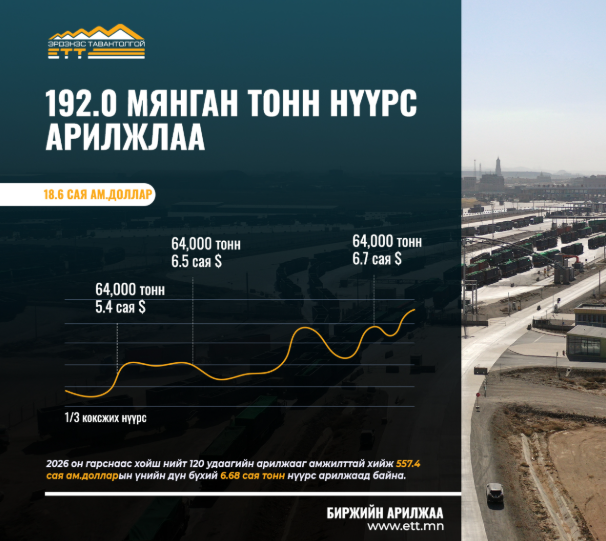 2026 онд *120 удаагийн арилжаагаар* 557.4 сая ам.долларын үнийн дүн бүхий 6.68 сая тонн нүүрс арилжлаа