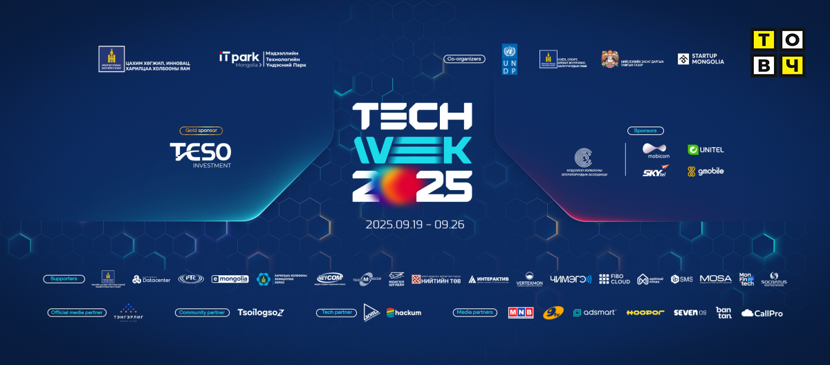 Монгол орны өнцөг булан бүрд “Монголын технологийн 7 хоног – TechWeek 2025” нэгэн зэрэг өрнөж, дижитал шилжилтийн цоо шинэ уур амьсгалыг мэдрүүлэх гэж байна. Тодруулбал, 2025 оны есдүгээр сарын 19–26-ны өдрүүдэд энэхүү арга хэмжээ зохион байгуулагдах юм.
