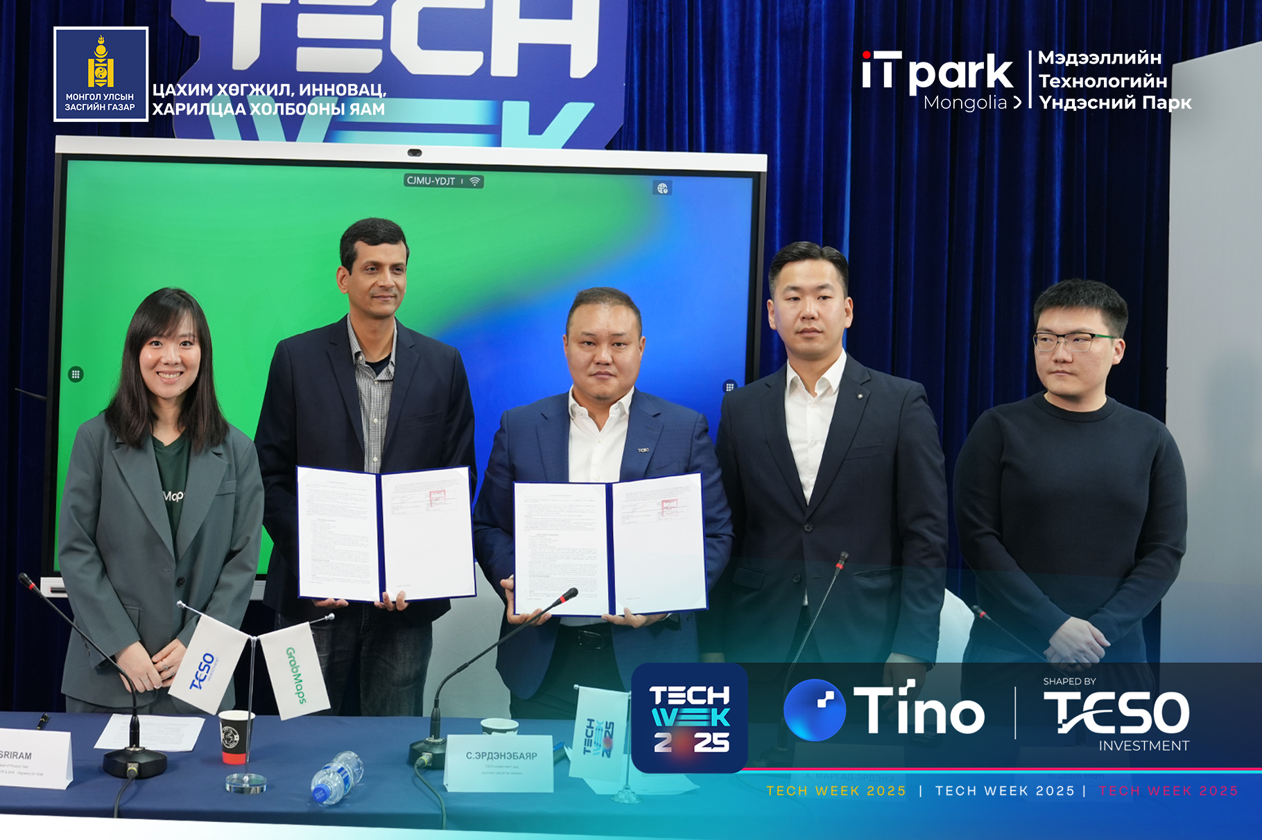 Мөн TECHWEEK 2025-ын Gold Sponsor “Тэсо Инвестмэнт” группийн хөрөнгө оруулалттай “TINO” супер апп нь Зүүн Өмнөд Азийн тэргүүлэх супер апп болох “GrabMaps”-тай стратеги болон технологийн хамтын ажиллагааны гэрээ байгуулж, олон улсад батлагдсан газрын зураг боловсруулах инновацыг Монгол Улсад нутагшуулах томоохон зорилтыг дэвшүүлэв.