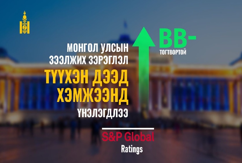 Олон улсын зээлжих зэрэглэлийн үнэлгээний S&P (Эс энд Пи) агентлаг Монгол Улсын зээлжих зэрэглэлийг “B+ эерэг” байсныг нэг шат ахиулж, ‘BB-, тогтвортой” болгон сайжруулснаа өнөөдөр зарлалаа. Ингэснээр тус агентлагийн үнэлгээгээр Монгол Улсын зээлжих зэрэглэл сүүлийн 13 жилийн дээд түвшинд хүрлээ.